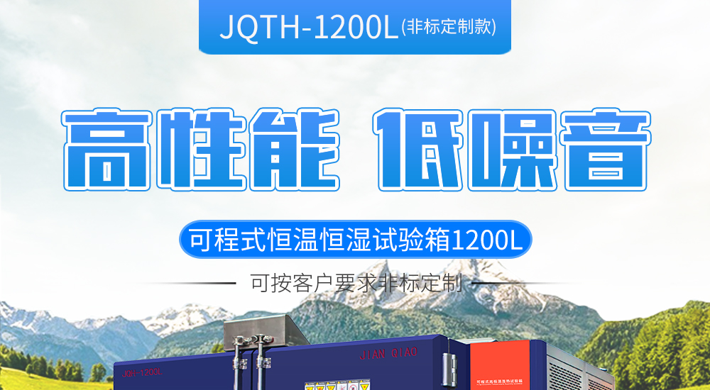用途:可程式恒溫恒濕試驗箱 JQTH-1200L(屬于:雙開門非標定制款)主要用來測試各種材料耐熱、耐寒、耐干、耐濕的性能。本機采用智能中英俄文顯示7寸彩色觸控式屏幕畫面,操作簡單,程序編輯